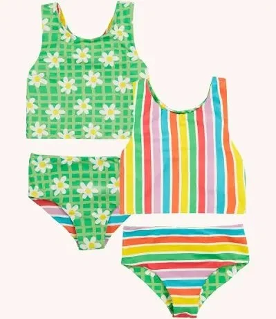 Your little beach adventurer will love having two beach outfits in one with our 2-piece Tegan Reversible Tankini. With thick straps, this two-piece set has an elasticated neckline and waistband for a comfortable fit.